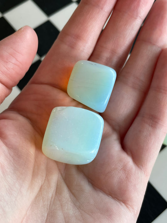 One (1) Opalite Hand Carved Crystal Freeform Cube