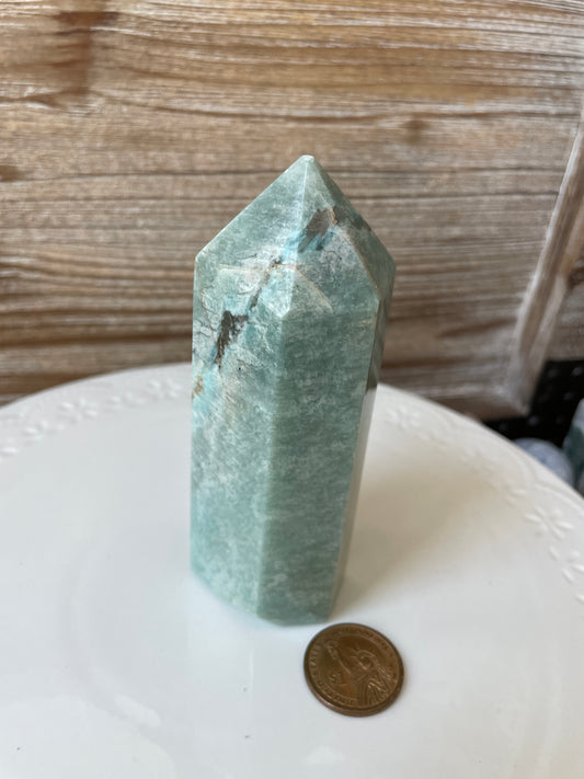 Shimmery Amazonite Crystal Tower with Stunning Turquoise and Taupe Streaks *Slightly Chipped Point