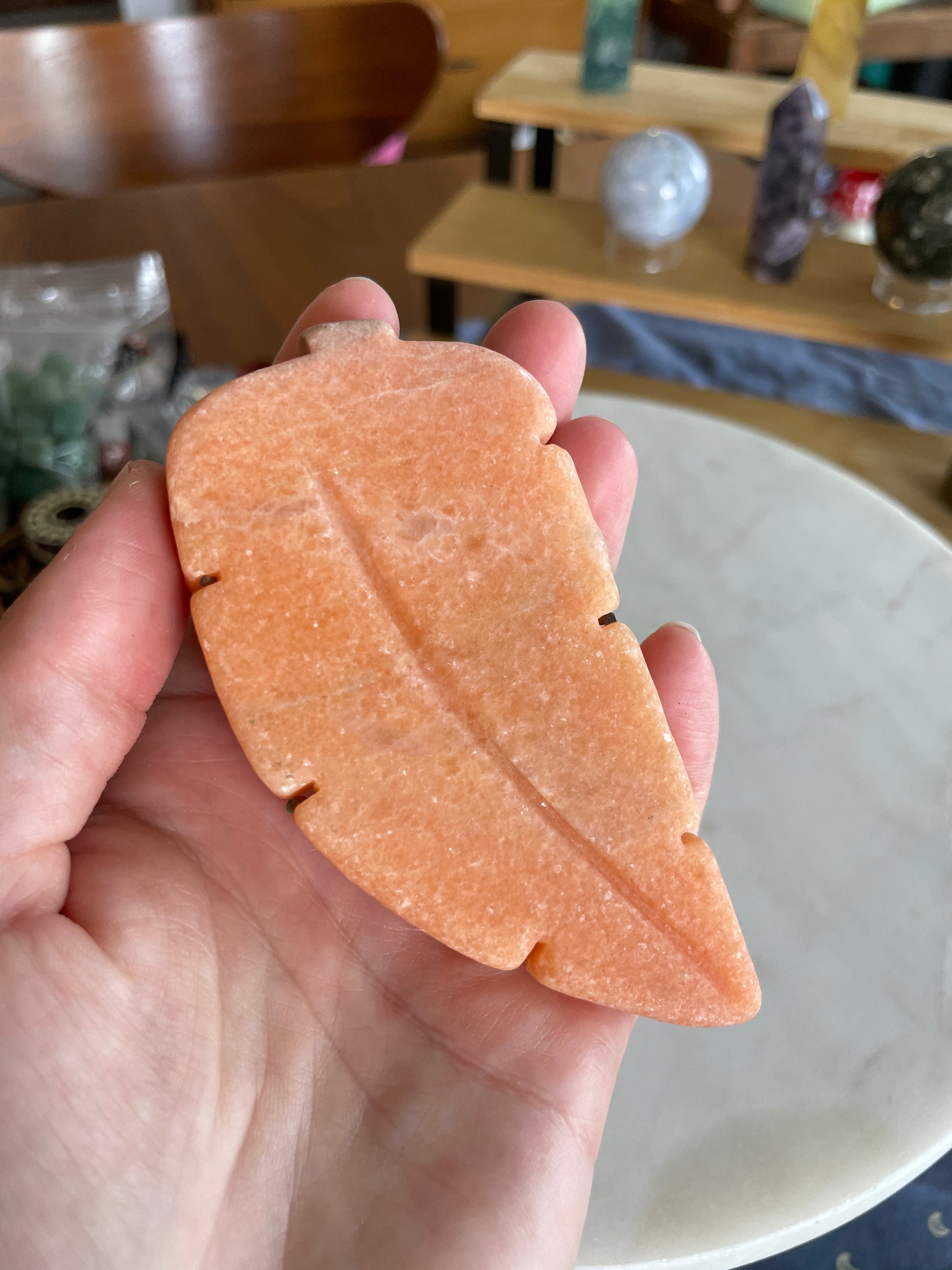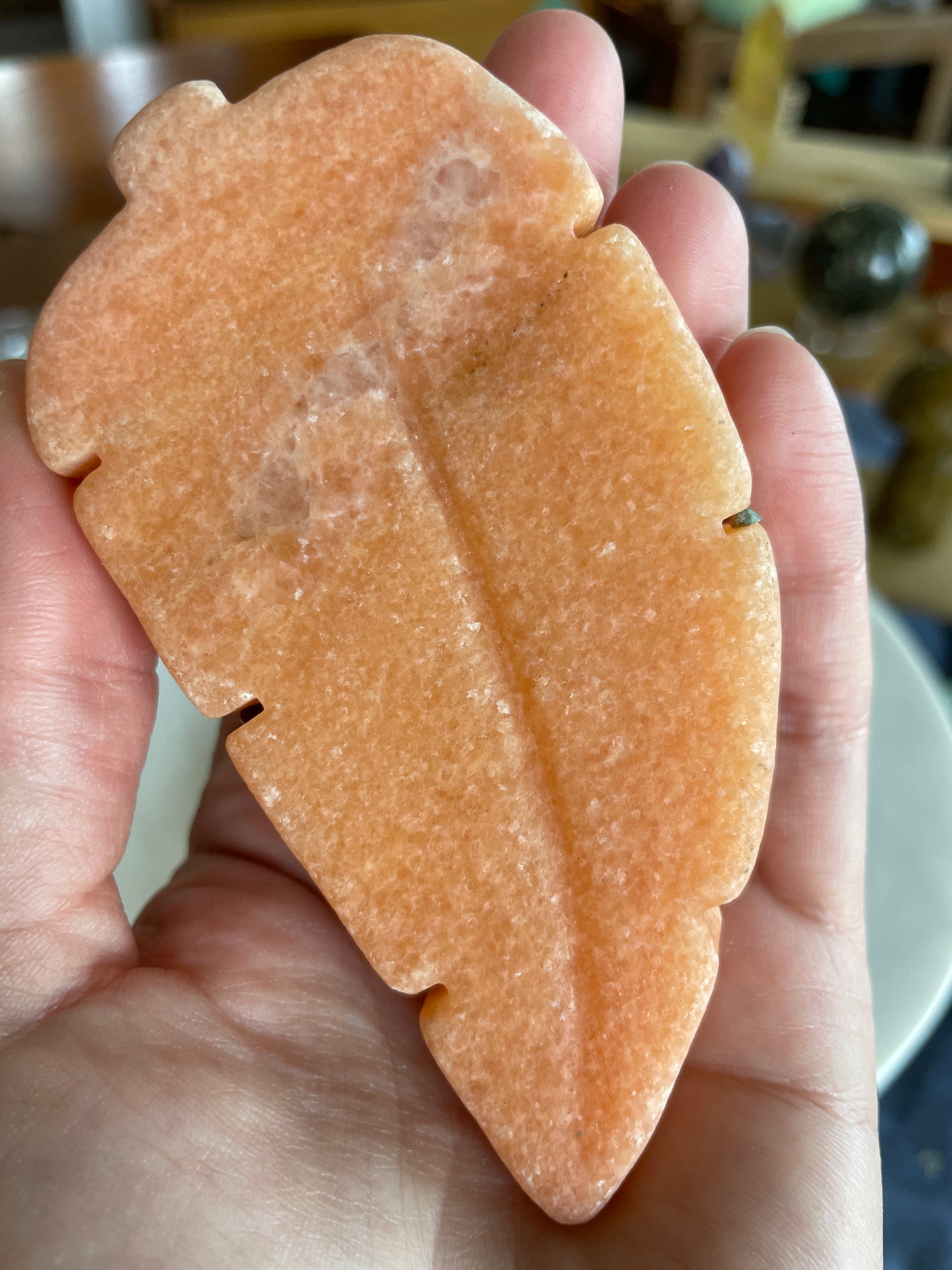 Orange Calcite Leaf | Crystal Carving