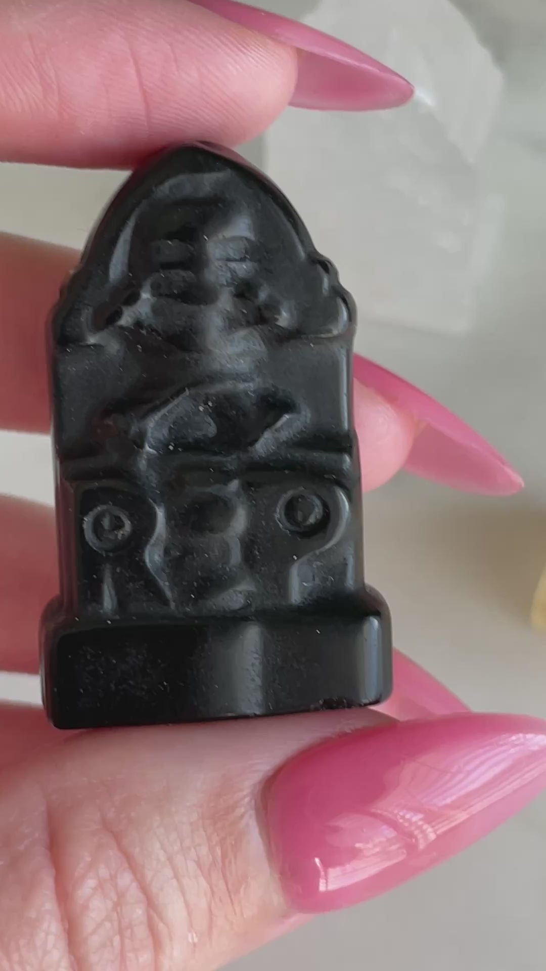 R.I.P., summer! Summon the spirit of spooky season with these alluring crystal headstones. Measuring 1.5 inches, these charming carvings are the ideal gift for Halloween, or a wicked addition to any display.