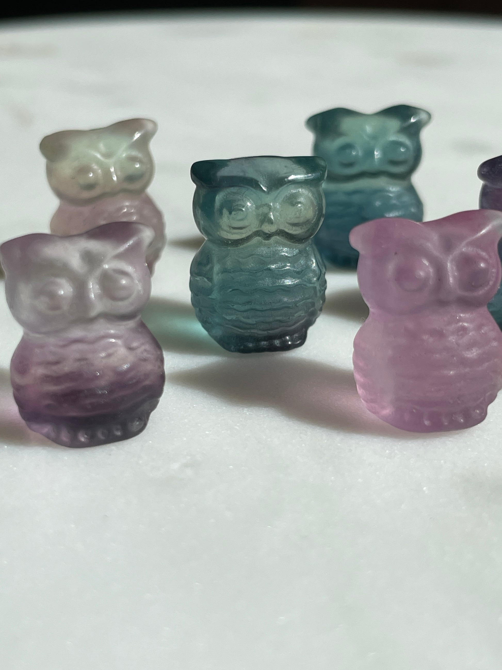 One (1) Mini Fluorite Crystal Carving | Owl | Intuitively Chosen
