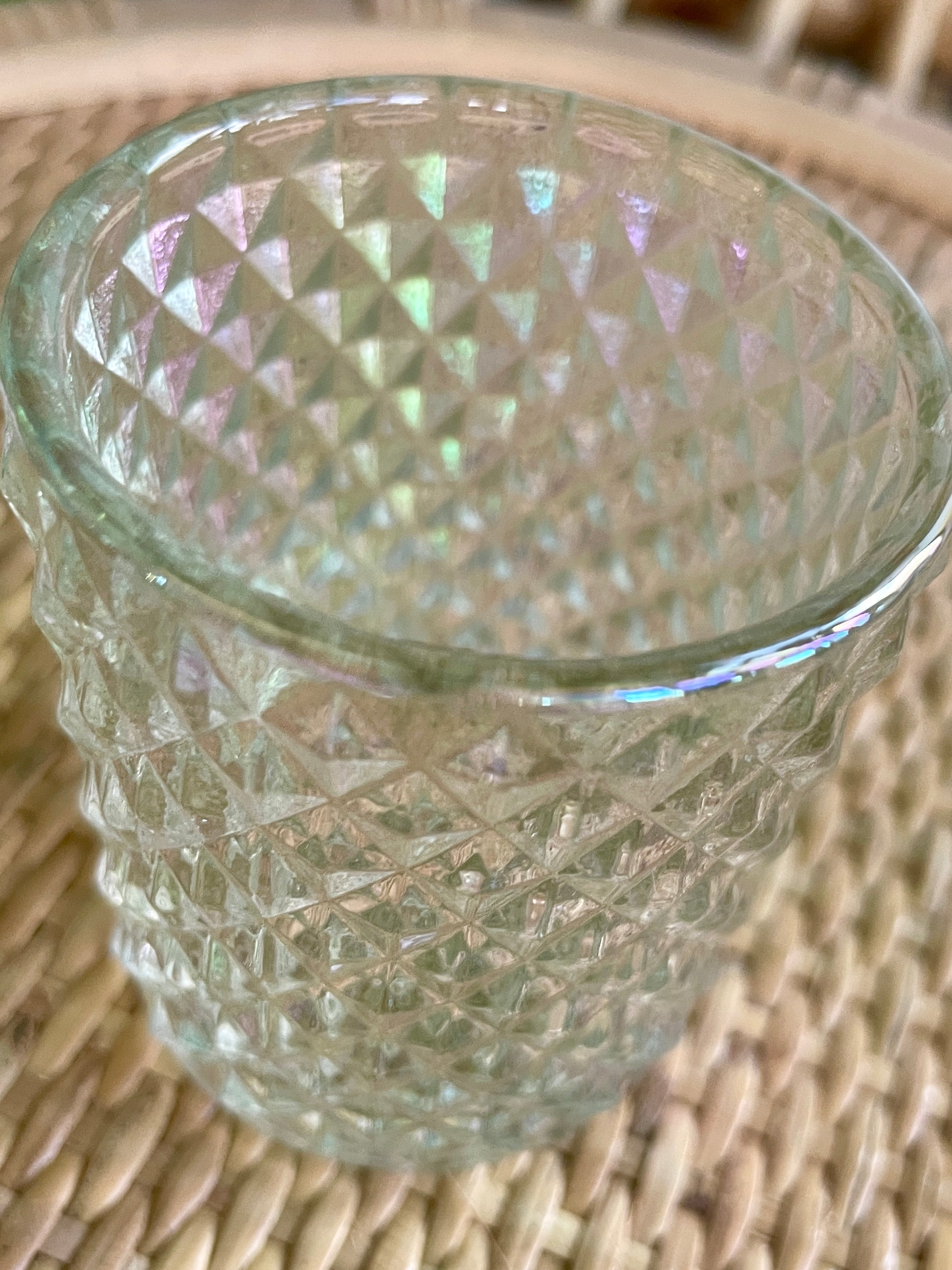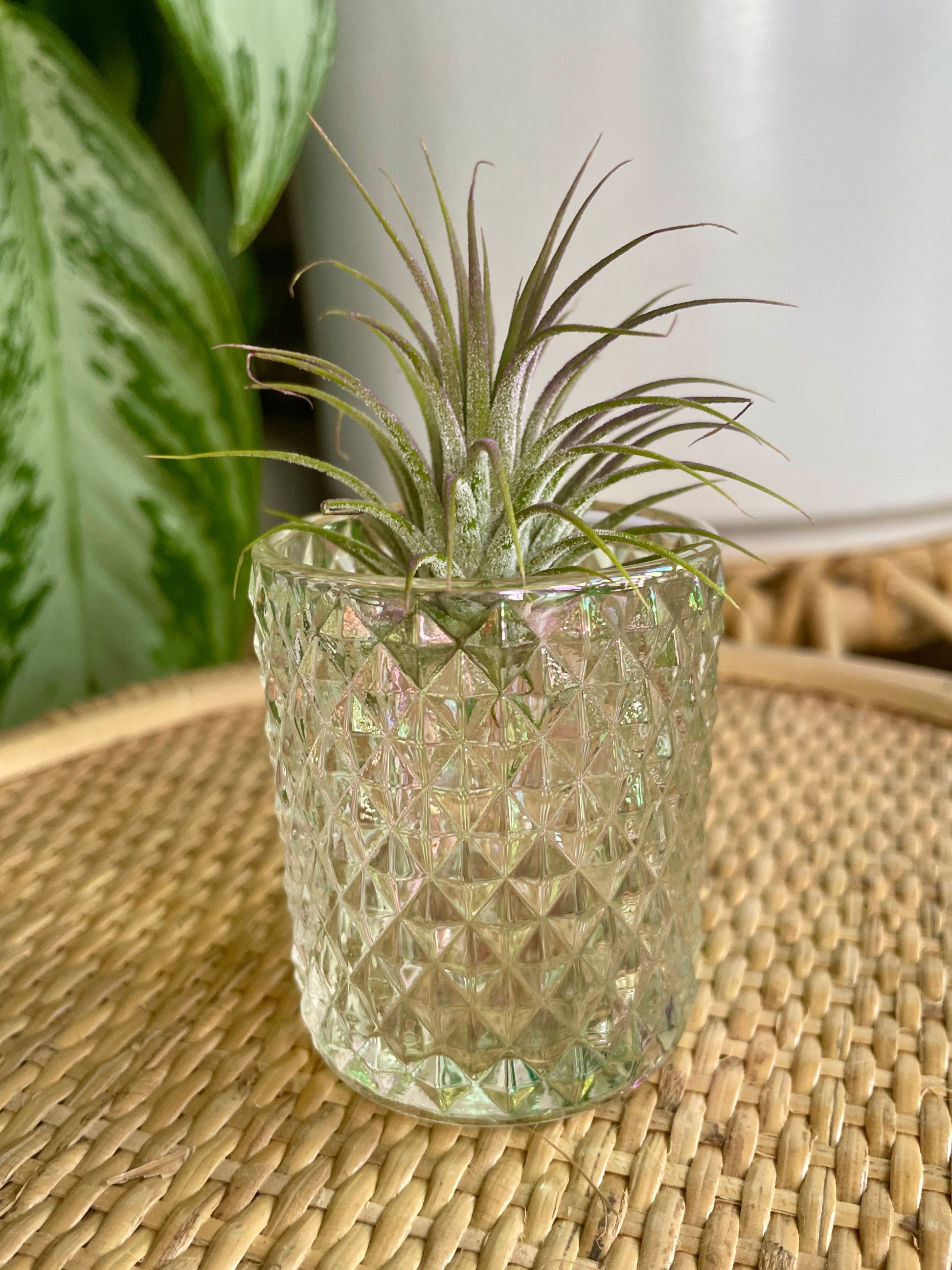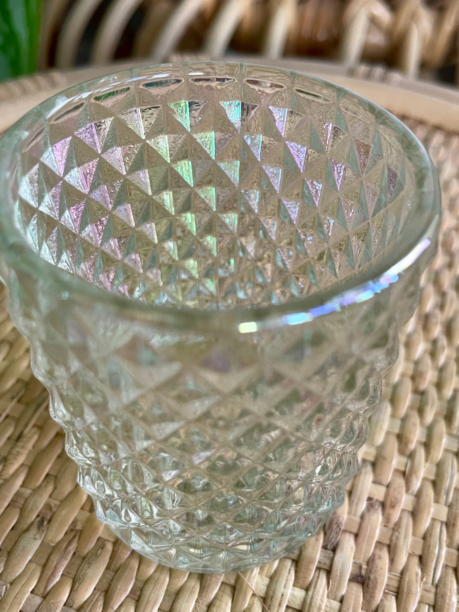 With its iridescent sheen, this miniature glass planter throws rainbows around the room when sunlight shines through it. Perfect as a propagation vessel for small houseplant cuttings or as a planter, this glamorous vintage-style vessel makes the perfect addition to your home or as a gift for a friend.